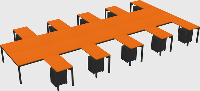 Orange Shared L-shaped Office Desk With Metal Mobile Drawers For 10 Persons