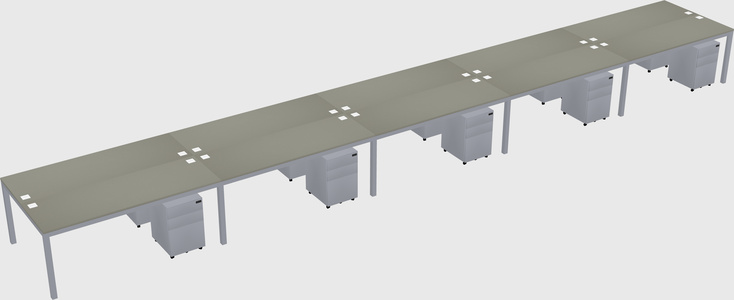 Grey Shadows Shared L-shaped Office Desk With Metal Mobile Drawers For 10 Persons