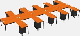 Orange Shared L-shaped Office Desk With Metal Mobile Drawers For 10 Persons