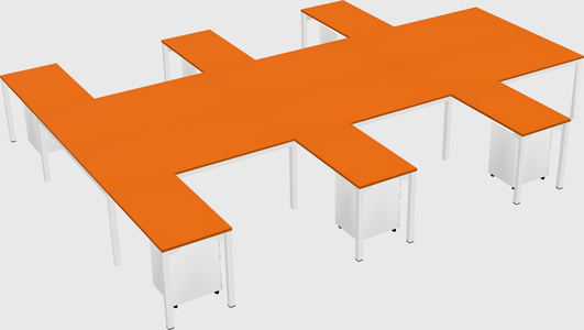 Orange Shared L-shaped Office Desk With Metal Mobile Drawers For 6 Persons