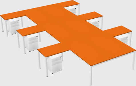 Orange Shared L-shaped Office Desk With Metal Mobile Drawers For 6 Persons
