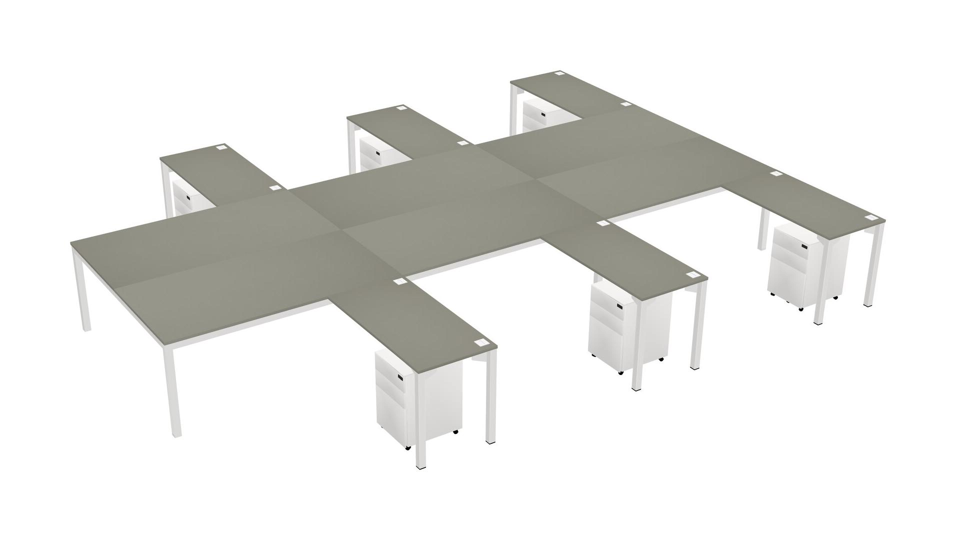 Grey Shadows Shared L-shaped Office Desk With Metal Mobile Drawers For 6 Persons