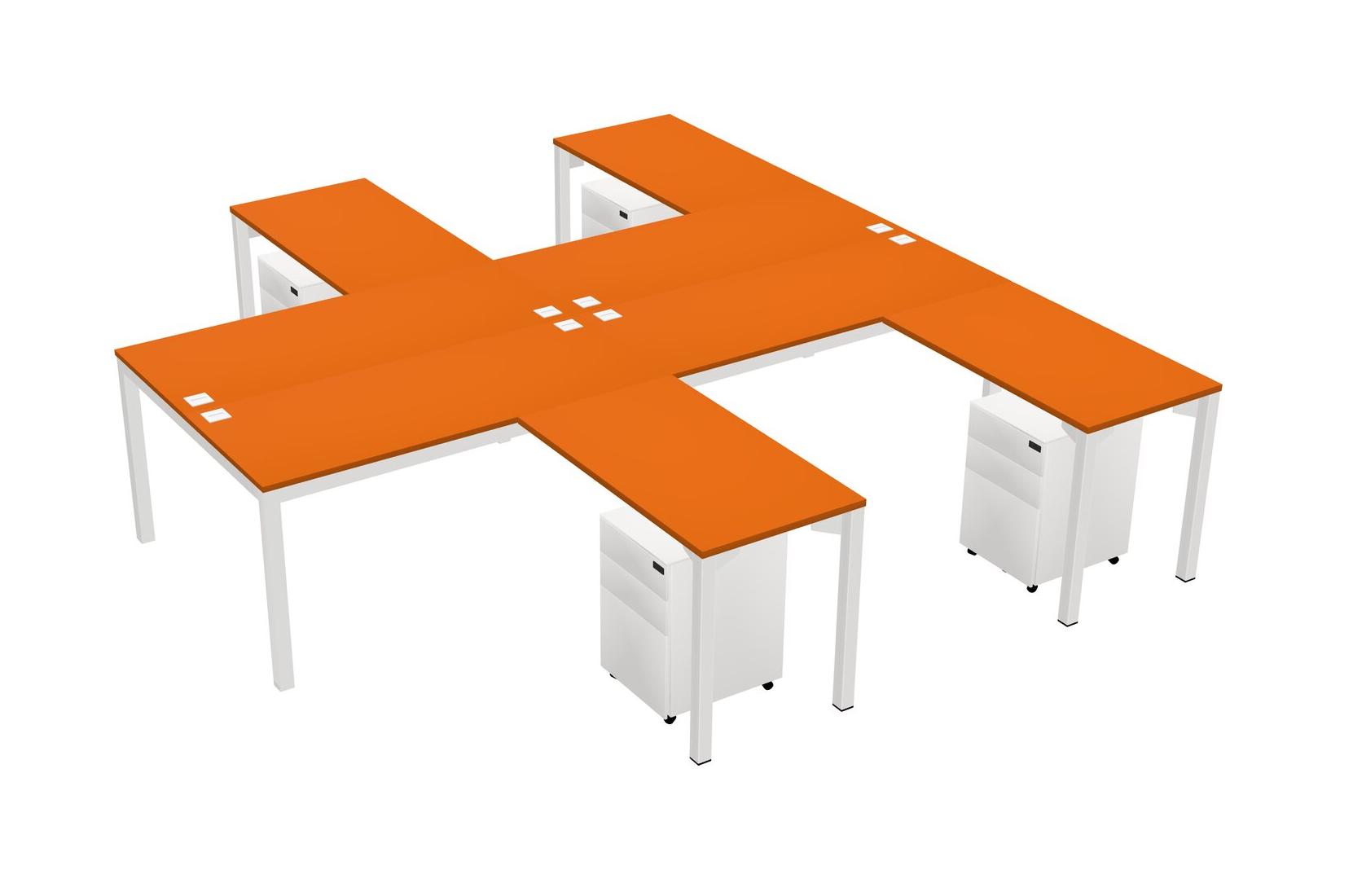 Orange Shared L-shaped Office Desk With Metal Mobile Drawers For 4 Persons