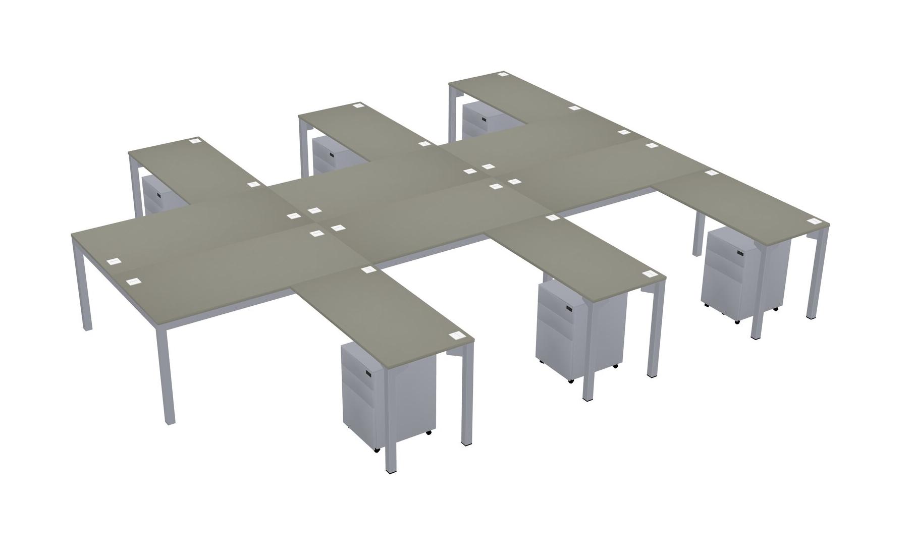 Grey Shadows Shared L-shaped Office Desk With Metal Mobile Drawers For 6 Persons