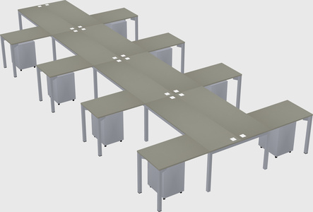 Grey Shadows Shared L-shaped Office Desk With Metal Mobile Drawers For 8 Persons