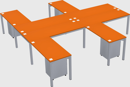 Orange Shared L-shaped Office Desk With Metal Mobile Drawers For 4 Persons