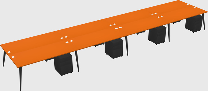 Orange Shared L-shaped Office Desk With Metal Mobile Drawers For 8 Persons