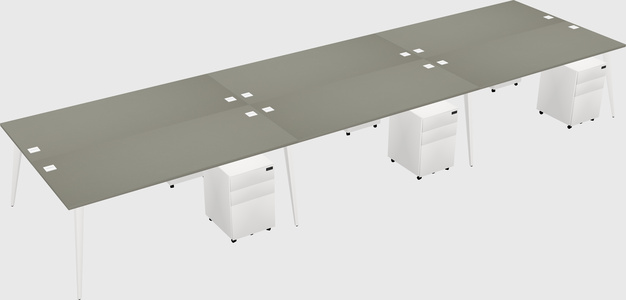 Grey Shadows Shared L-shaped Office Desk With Metal Mobile Drawers For 6 Persons