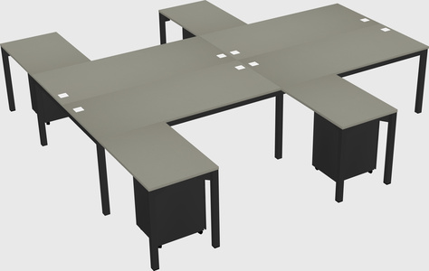 Grey Shadows Shared L-shaped Office Desk With Metal Mobile Drawers For 4 Persons