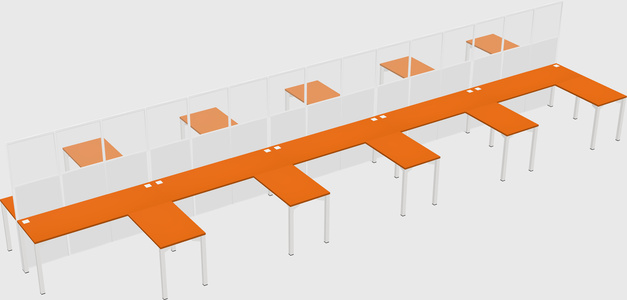 Orange Shared L-shaped Office Desk For 10 Persons