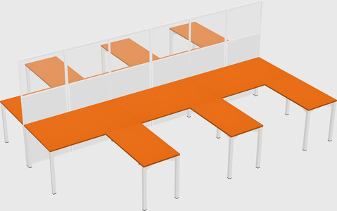 Orange Shared L-shaped Office Desk For 6 Persons