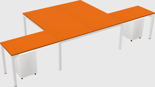 Orange Shared L-shaped Office Desk With Metal Mobile Drawers For 2 Persons