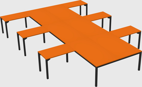 Orange Shared L-shaped Office Desk For 6 Persons