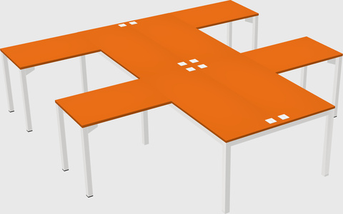 Orange Shared L-shaped Office Desk For 4 Persons