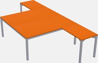 Orange Shared L-shaped Office Desk For 2 Persons