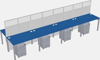 Prism Blue Shared Rectangular Office Cubicle Panel System With Mobile Drawers For 8 Persons