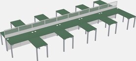 Green Shared L-shape Office Cubicle Panel System For 10 Persons