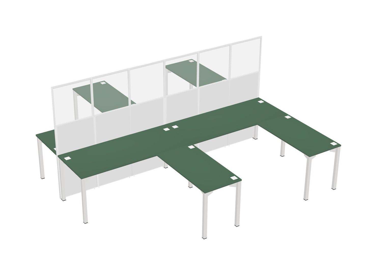 Green Shared L-shape Office Cubicle Panel System For 4 Persons