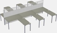 Grey Shadows Shared L-shape Office Cubicle Panel System For 6 Persons