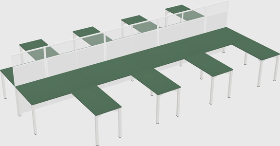 Green Shared L-shape Office Cubicle Panel System For 8 Persons