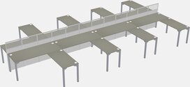 Grey Shadows Shared L-shape Office Cubicle Panel System For 8 Persons