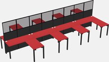 Grey Shadows Shared L-shape Office Cubicle Panel System For 8 Persons