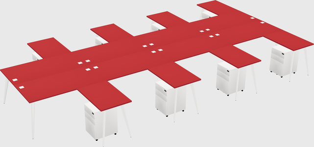 Prism Red Shared L-shape Office Cubicle Panel System For 8 Persons