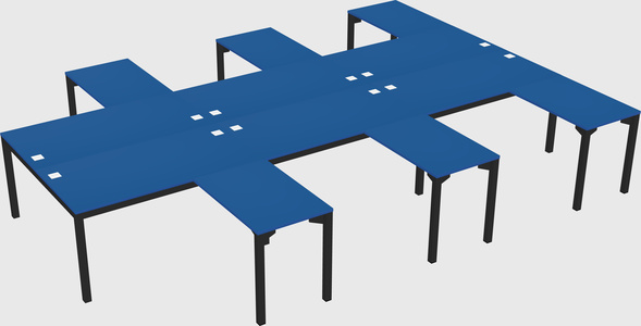 Prism Blue Shared L-shape Office Cubicle Panel System For 6 Persons