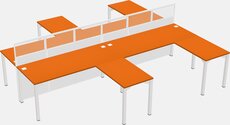 Orange Shared L-shape Office Cubicle Panel System For 6 Persons