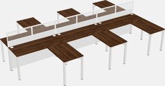 Grey Shadows Shared L-shape Office Cubicle Panel System For 6 Persons