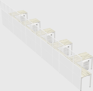 Heinne Holz Shared L-Shaped Office Cubicle Panel System With Mobile Drawers For 5 Persons