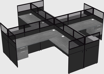 Grey Shared L-Shaped Office Cubicle Panel System With Mobile Drawers For 5 Persons