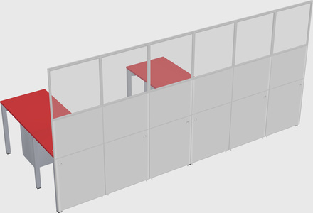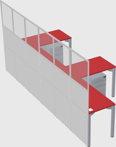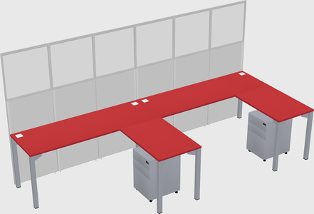 Prism Red Shared L-Shaped Office Cubicle Panel System With Mobile Drawers For 2 Persons