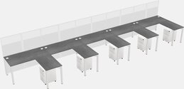 Grey Shared L-Shaped Office Cubicle Panel System With Mobile Drawers For 5 Persons