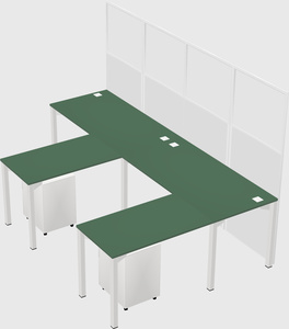 Green Shared L-Shaped Office Cubicle Panel System With Mobile Drawers For 2 Persons
