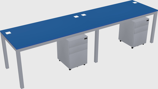 Prism Blue Shared L-Shaped Office Cubicle Panel System With Mobile Drawers For 2 Persons