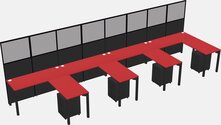 Black Shared L-Shaped Office Cubicle Panel System With Mobile Drawers For 4 Persons