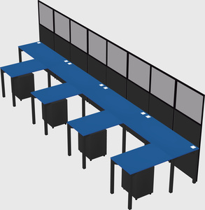 Prism Blue Shared L-Shaped Office Cubicle Panel System With Mobile Drawers For 4 Persons