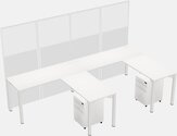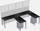 Grey Shadows Shared L-Shaped Office Cubicle Panel System With Mobile Drawers For 2 Persons