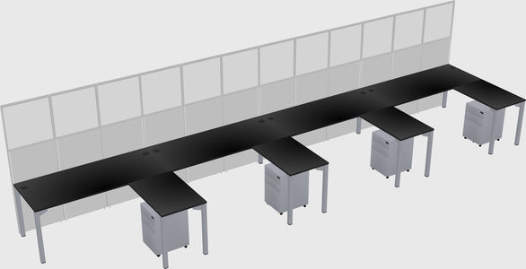 Black Shared L-Shaped Office Cubicle Panel System With Mobile Drawers For 4 Persons