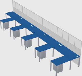 Prism Blue Shared L-Shaped Office Cubicle Panel System With Mobile Drawers For 5 Persons