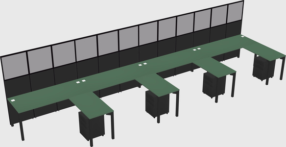 Green Shared L-Shaped Office Cubicle Panel System With Mobile Drawers For 4 Persons