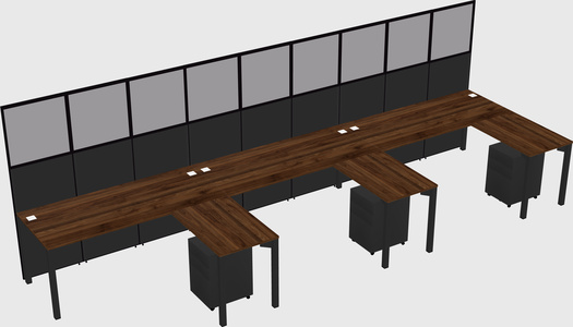 Columbia Walnut Shared L-Shaped Office Cubicle Panel System With Mobile Drawers For 3 Persons