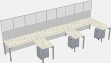Grey Shadows Shared L-Shaped Office Cubicle Panel System With Mobile Drawers For 3 Persons