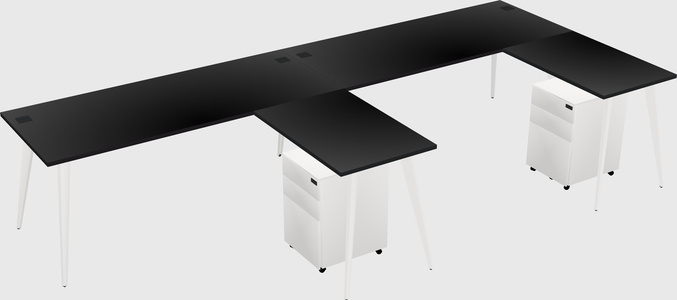 Black Shared L-Shaped Office Cubicle Panel System With Mobile Drawers For 2 Persons