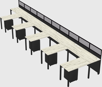 Heinne Holz Shared L-Shaped Office Cubicle Panel System With Mobile Drawers For 5 Persons