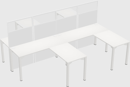 White Shared L-Shaped Office Cubicle Panel System With Mobile Drawers For 4 Persons