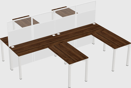 Columbia Walnut Shared L-Shaped Office Cubicle Panel System With Mobile Drawers For 4 Persons