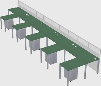 Green Shared L-Shaped Office Cubicle Panel System With Mobile Drawers For 5 Persons
