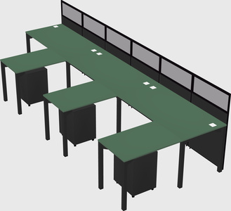 Green Shared L-Shaped Office Cubicle Panel System With Mobile Drawers For 3 Persons